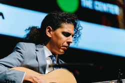In Jackson, an official opening program and reception was hosted by thinkWY | Wyoming Humanities on the evening of January 12, 2018 at The Center for the Arts. Special guest speakers were participating Yemeni-Bosnian artist Alia Ali, Shannon Smith, Executive Director of thinkWY and Paul G. Chandler, Founding President of CARAVAN. The opening also included a special musical performance by Mahmoud Chouki (“Mood”), Moroccan master guitarist and multi-instrumentalist.
